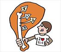 吃沒有骨頭的肉時(shí),就只是品嘗肉自身的美味,而吃帶骨頭的肉的時(shí),從骨頭中流出的骨髓會(huì)給肉的美味錦上添花。