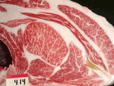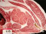 "肉質(zhì)等級(jí)"是從BMS(牛肉大理石紋標(biāo)準(zhǔn)=牛脂肪間雜基準(zhǔn))、BCS(牛肉色澤標(biāo)準(zhǔn))、肉的松緊和紋理、脂肪的色澤和質(zhì)量這4項(xiàng)內(nèi)容來(lái)比較,將之區(qū)分成5個(gè)等級(jí)。