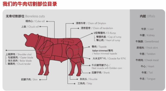 經(jīng)過(guò)育肥的牛進(jìn)行分切,精修等加工處理后,使之成為可以進(jìn)行市場(chǎng)銷售的商品,工廠進(jìn)行整牛28個(gè)部分精細(xì)分,確保每個(gè)部位都可以送到您的手上。