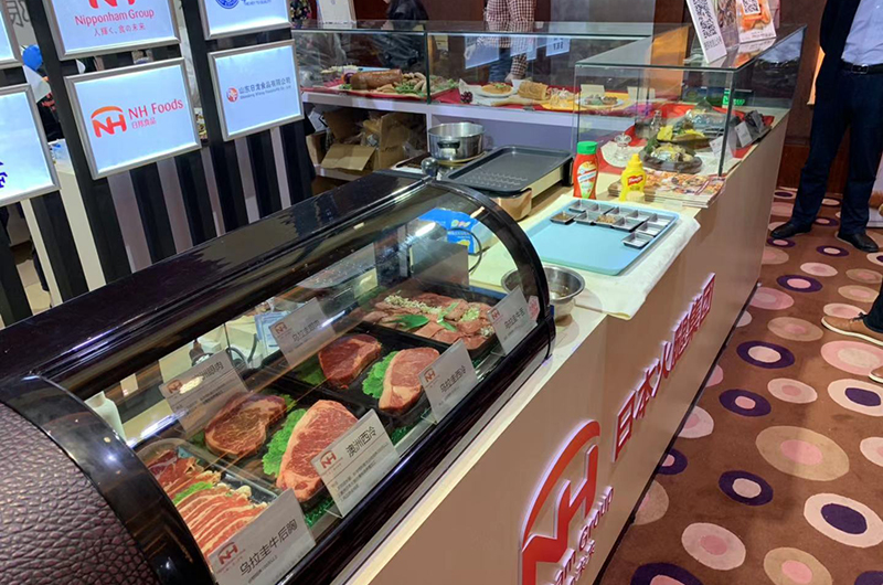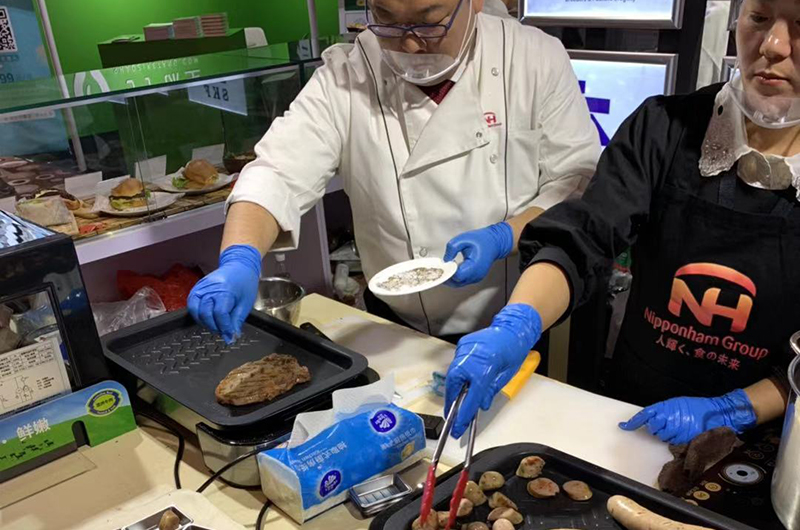 在日本火腿集團(tuán)的展位上,我們當(dāng)場(chǎng)提供試吃,讓客戶更直觀的了解我們的產(chǎn)品。