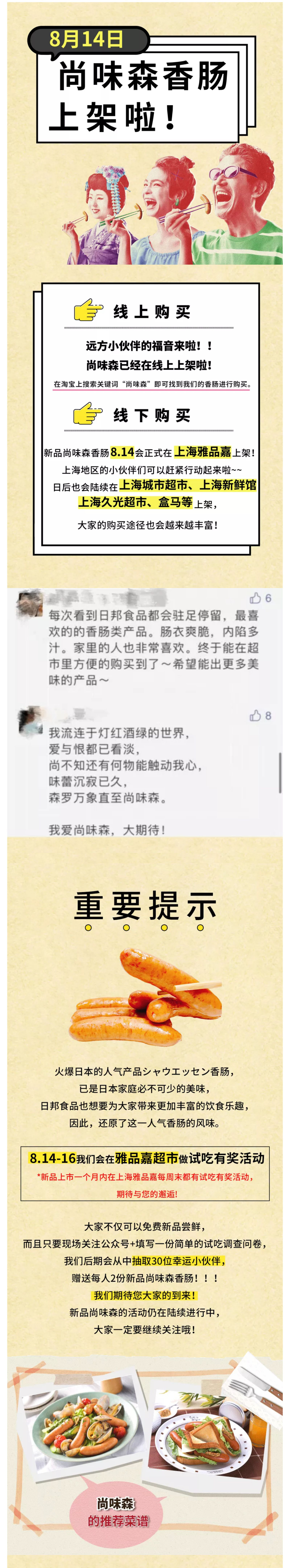 尚味森香腸在中國(guó)區(qū)正式上架!