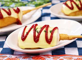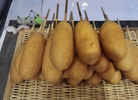 2.香腸選用精選上乘豬肉,入口富有汁水感,與外糊貼合較好,與外糊口味極搭。